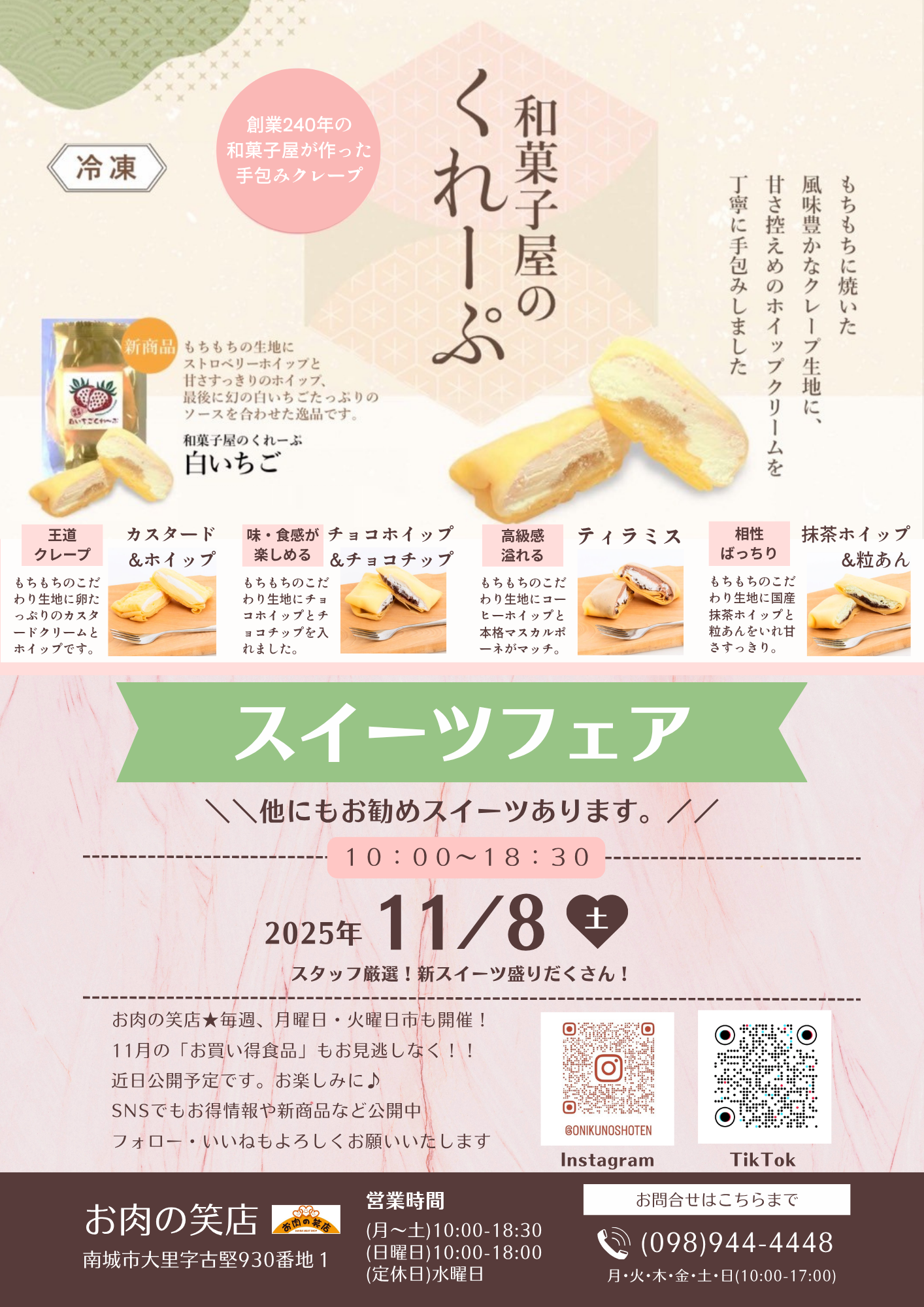 新商品のクレープやケーキ