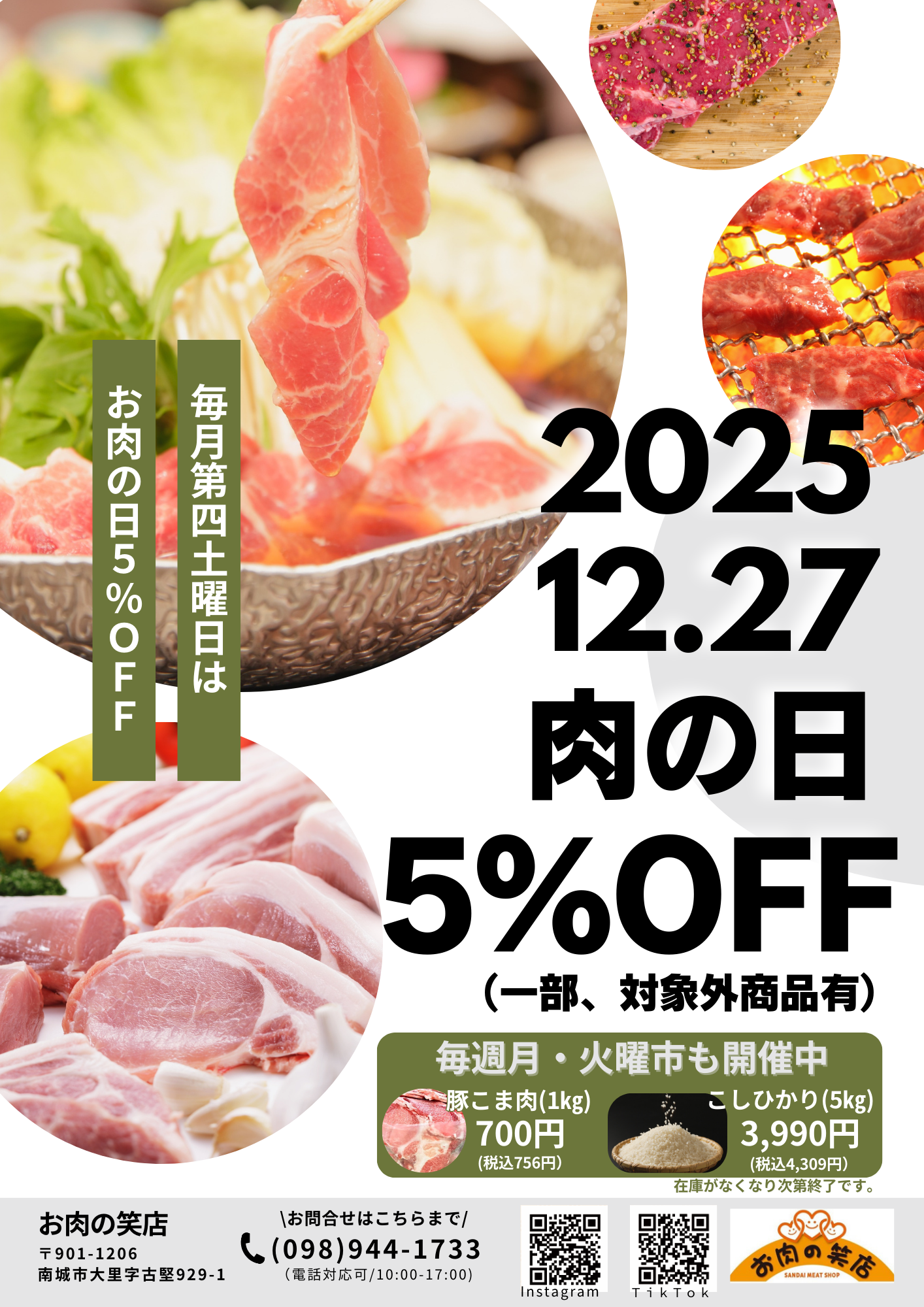 12月27日(第4土曜日)は毎月恒例お肉の日!!