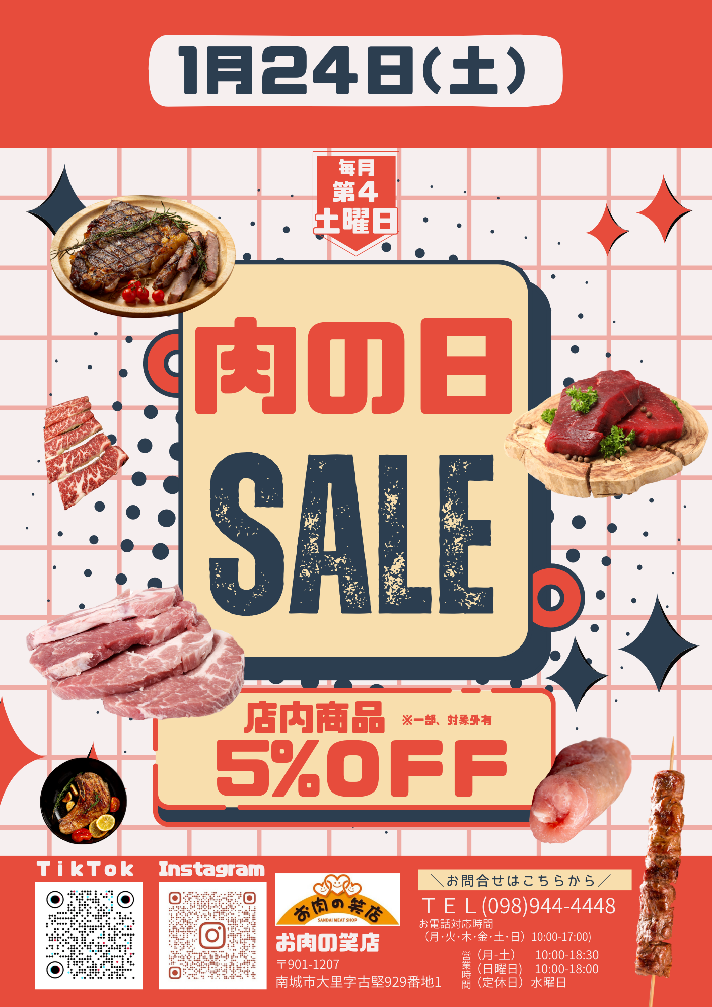 1月24日(第4土曜日)は毎月恒例お肉の日!!