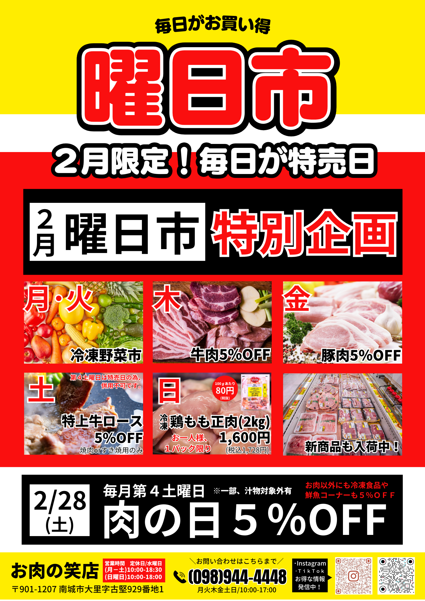 2月限定 曜日市!毎日が特売日✨