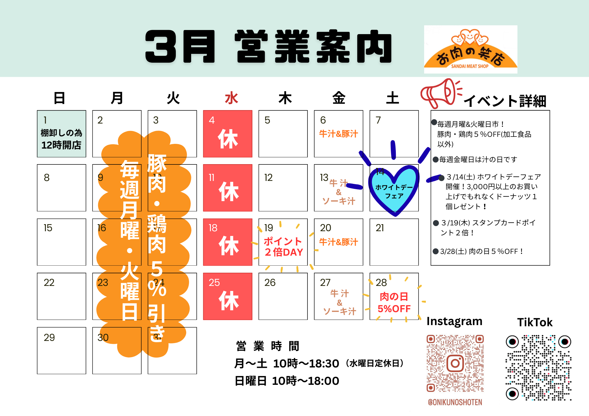 3月の営業&イベント案内